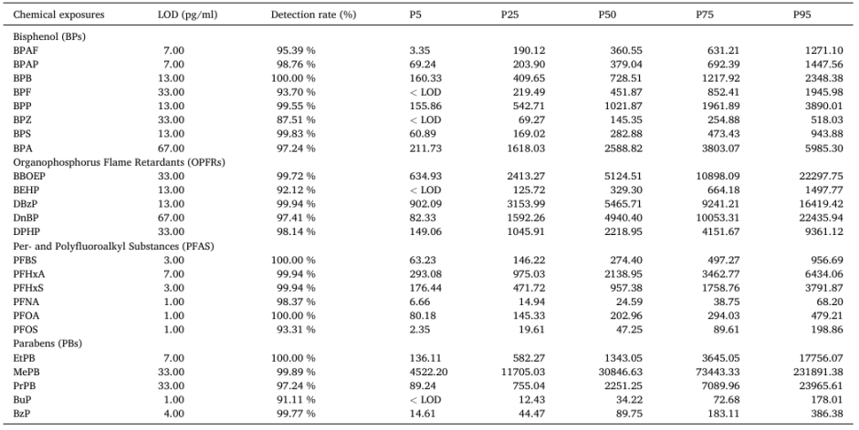 1.1910名参与者尿液中的EDC浓度