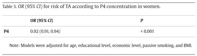 4.早孕期P4水平与TA的关联