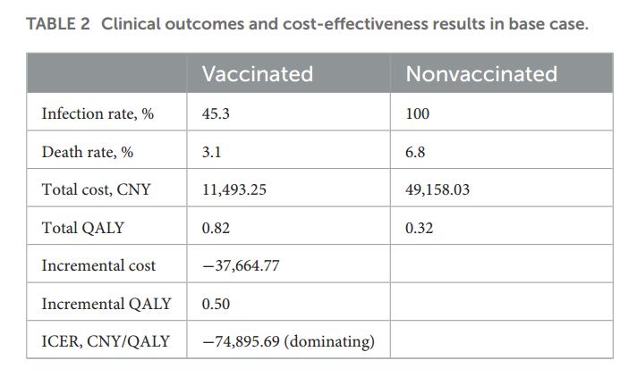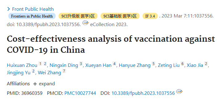2023年3月,北京体育大学团队在《Frontiers in Public Health》(中科院3区,影响因子3.4)发表了一项原始研究,结果显示与未接种疫苗相比,中国普通人群接种COVID-19疫苗可大幅降低感染率和死亡率,且具有成本效益;敏感性分析表明该结论具有稳健性,疫苗接种是占优策略。
