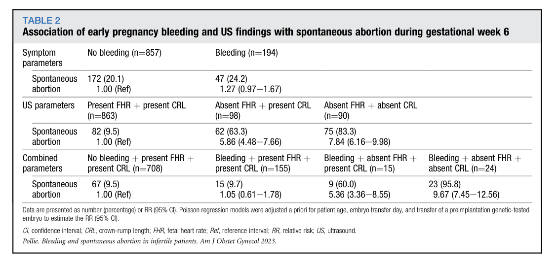 2023年11月,《American Journal of Obstetrics & Gynecology》发表重磅研究,首次明确早孕期阴道出血联合孕6-7周超声测量指标,可精准分层不孕患者胚胎移植后的自然流产风险,为临床咨询和风险评估提供关键依据,填补了不孕人群早孕期出血预后评估的研究空白!
