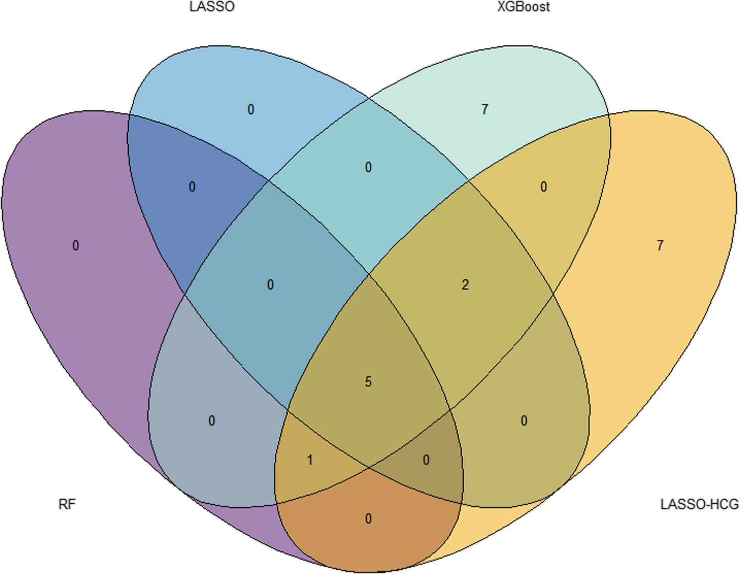 图1 通过四种方法筛选Wayne图变量